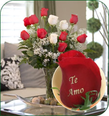 Products > 12 Roses - Te Amo (9 Red, 3 White)